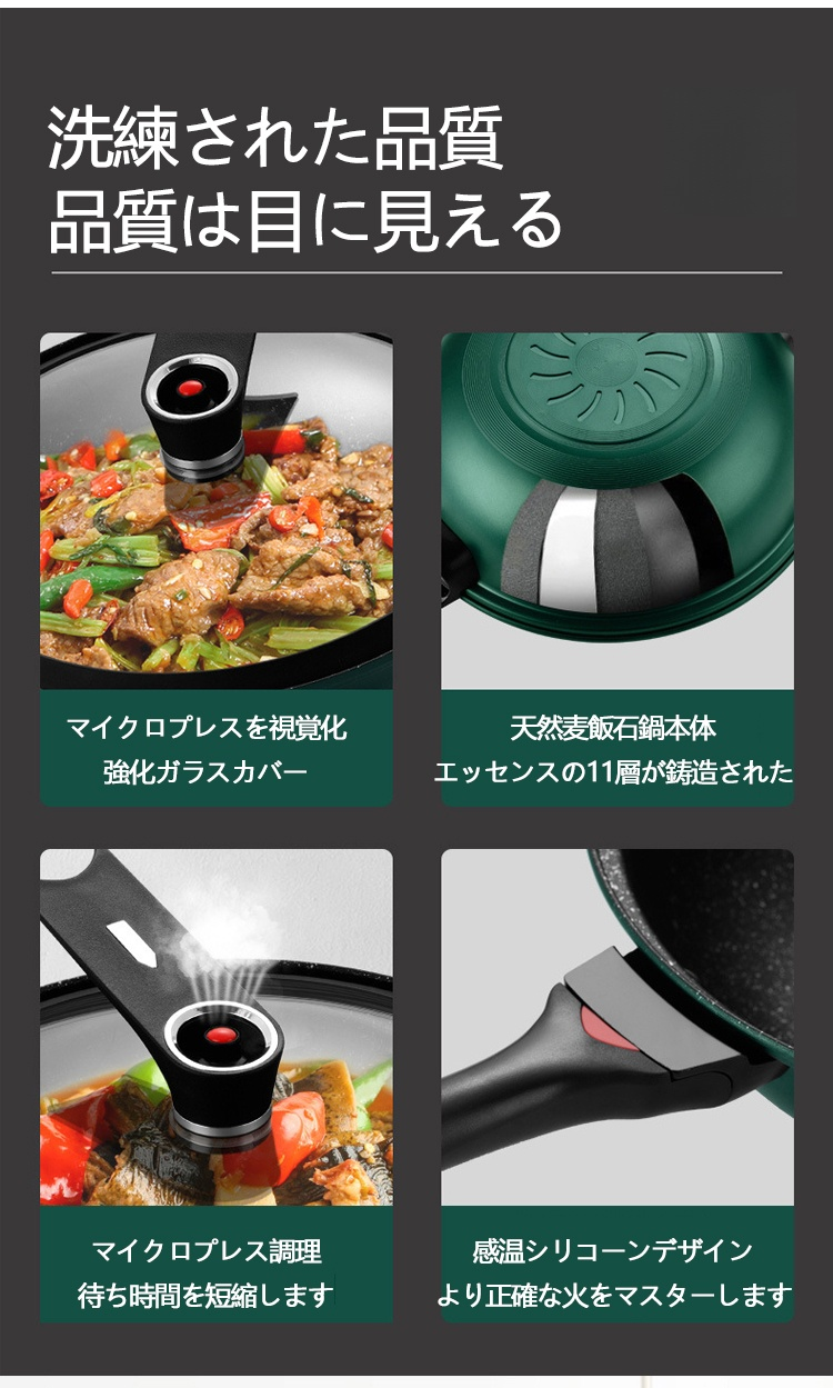 麥飯石マイクロプレスポットべたつきのない鍋